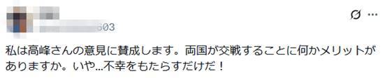 “我赞成高峰先生的观点。两国交战有什么好处吗?不......只会带来不幸!”↑